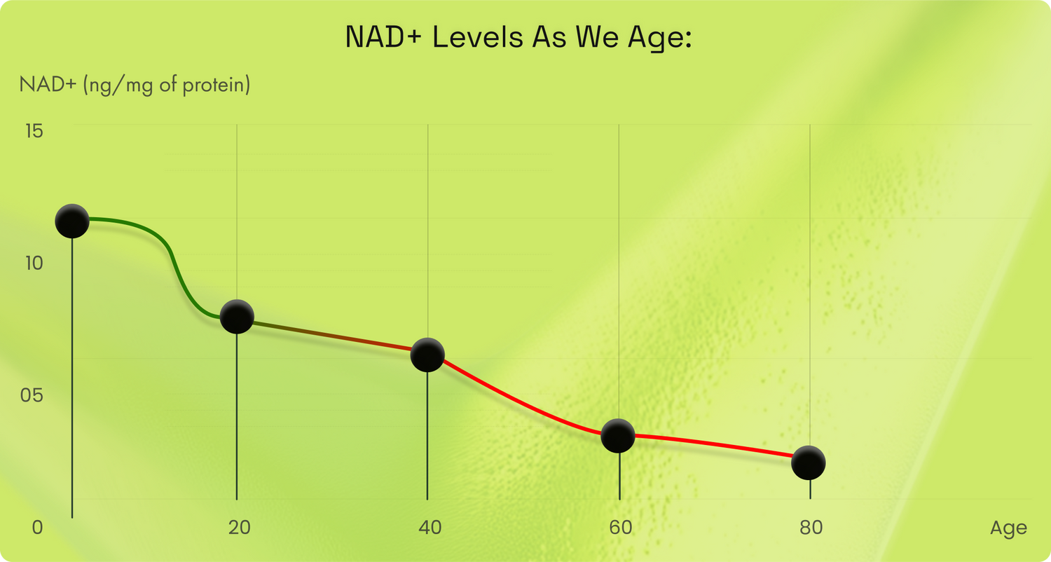 By age 40, your NAD+ levels can fall by more than 50% - slowing cellular repair and accelerating the visible and invisible signs of aging.