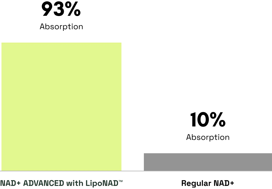 Our patented LipoNAD™ delivery system wraps each molecule in a liposomal layer — helping it bypass digestion and reach your cells where it’s needed most.